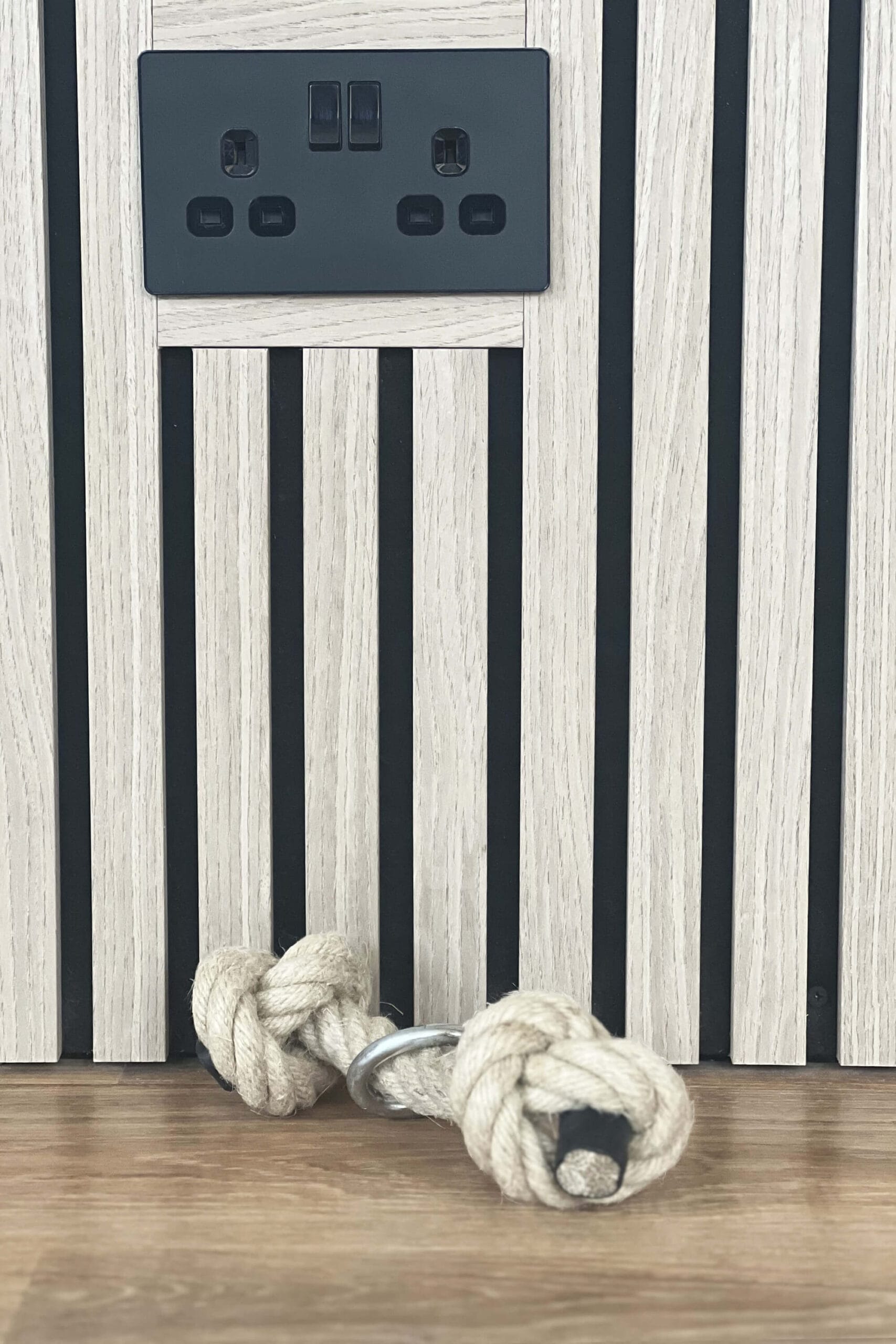 The most crucial design composition here was the lighting plan and electrical points. I didn’t want cables running all over the gym floor, or downlights shining down on, well, nothing, but a meticulous plan with gym equipment layout, and lighting which wouldn’t offend or blind the eye during that 6am training session, but a soft light washing the walls beautifully, sockets in the floor carved around the Karndean, and overhead lights highlighting only the equipment. All on various circuits too, to help shape-shift the space depending on the mood and function.